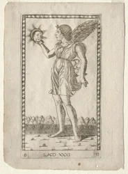 Genius of Time from the Tarocchi, series B: Cosmic Principles & Virtues, #32 Genius of the World from the Tarocchi, series B: Cosmic Principles & Virtues, #33 Genius of Time (from the Tarocchi, series B: Cosmic Principles & Virtues, #32) Genius of the World (from the Tarocchi, series B: Cosmic Principles & Virtues, #33) Astrology (from the Tarocchi, series C: Liberal Arts, #29) The Angel of the Eighth Sphere from the Tarocchi, Series A, before 1467 The Angel of the Eighth Sphere (from the Tarocchi, series A: Firmaments of the Universe, #48) Urania (astronomy) (from the Tarocchi series D: Apollo and the Muses, #12) Genius of the World (plate 33 from Genii and Virtues) The Angel of the Ninth Sphere (from the Tarocchi, series A: Firmaments of the Universe, #49) Urania Astronomy from the Tarocchi Series D: Apollo and the Muses, #12, before 1467 The Angel of the Ninth Sphere from the Tarocchi, series A Melpomene Tragedy (Tarocchi Series D: Apollo and the Muses, #17) Genius of the World Urania Melpomene (tragedy) (from the Tarocchi series D: Apollo and the Muses, #17) Allegorical Figure with a Sphere Logic (from the Tarocchi, series C: Liberal Arts, #22) Genius of Time, plate 32 from Genii and Virtues Logic from the Tarocchi, Series C: Liberal Arts, #22 Mercury (from the Tarocchi, series A: Firmaments of the Universe, #42) Genius of Time Mercury from the Tarocchi, Series A: Firmaments of the Universe, #42 Allegory of Will. She is represented with wings and holding a ball of different colors. Engraving in Eighth Sphere The Knowledge of God and the Seven Cardinal Virtues: Prudence Erato (lyric and love poetry) (from the Tarocchi series D: Apollo and the Muses, #14) Eighth Sphere