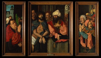16th century · a lot of people · bible (character) · bible · bible (scene) · christianity · religion · colour · crown of thorns · crown · suffering · flemish art · religious image · mockery · painting · renaissance · blood · torture · execution · turban · soldier · oil painting · mzpainting · polyptych · caricature · arrest of jesus · passion of jesus · jesus christ · new testament · crowning with thorns (christ) · frame (artwork) · · Prado, Madrid, Spain / Bridgeman Images