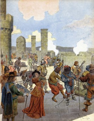 colour · colours · color · engraving · woman · armee · french · france · louis xiv 14 says the sun king (1638-1715) · sling (1648-1652) · fortification · bianchetticor · bastille · paris · engraving · french · castle · cannon · history · king · castles · Private Collection / Bridgeman Images