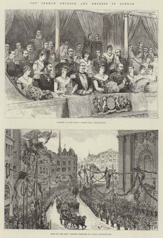 german emperor · empress · london · concert · royal albert hall · kensington · visit · city · passing · st pauls churchyard · royalty · royal visits · wilhelm ii of germany · augusta victoria of schleswig holstein · street scenes · city of london · Private Collection / Bridgeman Images · / Look and Learn |