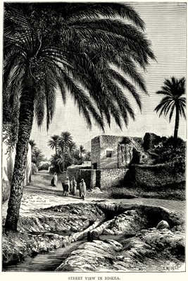 nature · city · africa · tree · road · building · buildings · street · plant · country · desert · continent · geography · african · lane · avenue · location · century · algeria · algerian · north africa · monochrome · engraving · publication · 19th century · black white · black and white · nineteenth century · geographical feature · biskra · engraving · the universal geography with illustations and maps · meunier · The Print Collector/Heritage Images