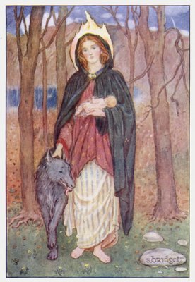christianity · christian · christianitiy · chrisitianity · vhristianity · christainity · chritians · christinaity · christian religion · christian values · religion · religious · religions · religius · wolf · she-wolf · wolves · jackals · animal · animals · wildlife animals · wildlife · wild life · several animals · saint · saints · ireland · costumes · britain · cloak · legends · history · religion · st bridget · folklore · Private Collection / Bridgeman Images
