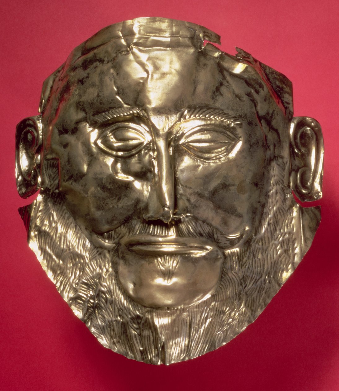 Replica of the Mask of Agamemnon, Mycenaean, c.16th century BC(Replica of the Mask of Agamemnon, Mycenaean, c.16th century BC (gold))Mycenaean |