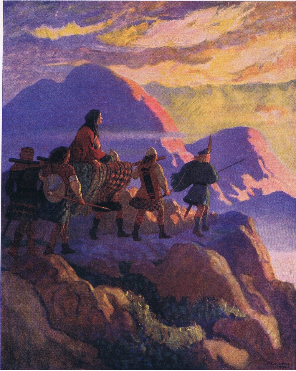 Helen Descends the Glen of Stones, from The Scottish Chiefs Published by Charles Scribner's Sons by Newell Convers Wyeth. Available as an art print on canvas, photo paper, watercolor board, uncoated paper or Japanese paper.