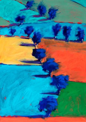 tree · contemporary art · calm · countryside · field · colour · multicoloured · landscape · painting · nobody · balstudio · mzpainting · 2020s · 21st century · contemporary artist · · Private Collection / Bridgeman Images