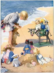 child · children · sand · holiday · costumes · paddling · seaside · Private Collection / Bridgeman Images |