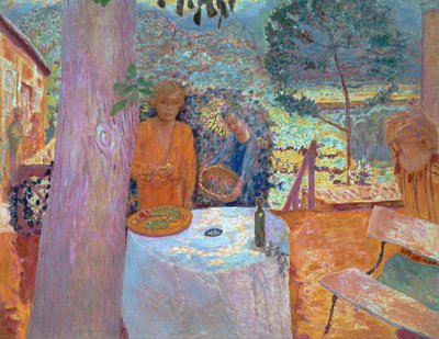 colour · woman · fruit · food · painting · several people · table · furniture · terrace · bonnard pierre (1867-1947) · painter · artist · outside · mzpainting · · Private Collection / Bridgeman Images