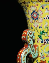 Detail (One of a Pair of Imperial Famille Rose Vases) Detail from One of a Pair of Imperial Famille Rose Vases Detail from a Pair of Imperial Famille Rose Vases A Pair of Imperial Famille Rose Vases A Pair of Imperial Famille Rose Vases (detail) of one of a pair of famille rose Detail (One of a Pair of Imperial Famille Rose Vases) Ming-style vase Covered jar with a famille rose enamelled decoration Pair of Yellow Ground Famille Rose Vases A Pair of Imperial Famille Rose Vases Vase One of a pair of Louis XV ewers Pot with a floral decoration Famille Rose vase with a mille fleurs decoration, Qianlong Dynasty An Underglaze Blue and Yellow Enamelled Moonflask with a Peony and Lotus Pattern, c.1723-1735 A fine and very rare famille rose celadon-ground vase with a gilt outlined enamel of prunus and roses, one of four enamels depicting the Cylindrical Vase Albarello in Majolica One of a Pair of Louis XV Ewers Minton Cloisonne Vase A fine famille rose yellow-ground bowl, 1821-1850 Famille Verte Vase, with Four Upright Panels Painted with Rocks and Flowering Plants, Two Monsters Two enamelled porcelain vases, Chinese, 15th-17th centuries, 1908 A Large Cloisonné enamel moonflask Detail of an enamel cartouche from a magnificent Imperial gold, cloisonne and Beijing enamel ewer, Duomuhu, engraved Qianlong four-character mark and of the period, Palace Workshops Greenware Jar with Moulded Decorations, Yue Kiln-site, Six Dynasties Period Pharmaceutical jar, from Chartreuse du Val Saint-Pierre Ming red and yellow baluster jar