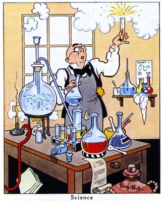 science · laboratory · explosion · scientist · experiment · boffin · experiments · scientific · humour · humorous · humor · cigarette card · card · vintage card · vintage · publicity · advertising · advert · advertisement · Private Collection / Bridgeman Images