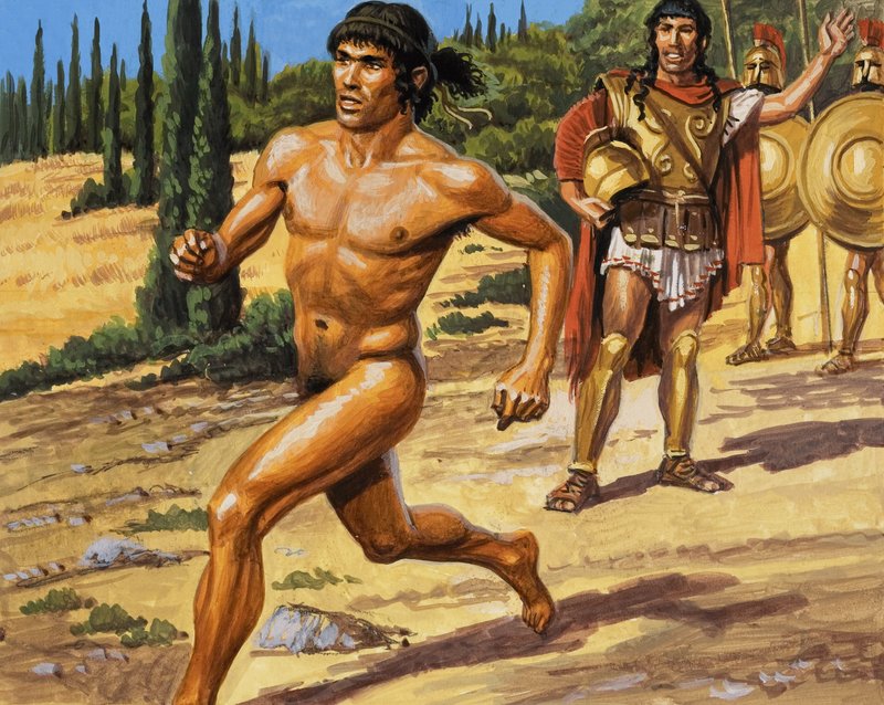 ancient greece · antiquity · illustration · payne roger (b.1934) · illustrator · runner · running · nudity · ancient greece · origin of word marathon · soldiers · nakedness · battle of marathon · greece · marathon · painting · mzpainting · / Bridgeman Images · / Look and Learn |