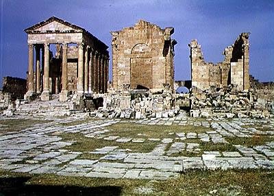 junon · minerve · temple · ruins · ruin · sufetula · architecture · ancient city · columns · capitol · north african · classical · zeus · athena · tympanum · corinthian · Sbeitla, Tunisia / Bridgeman Images |