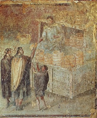 commerce · roman · buying · bakery · food · baker · boulangerie · bread · distribution · Museo Archeologico Nazionale, Naples, Italy / Bridgeman Images