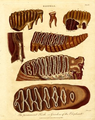 19th century · anatomy · tooth · elephant · animal · encyclopaedia · book · natural history · zoology · print · enamel · mzprint · / Bridgeman Images