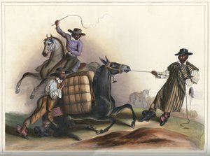 worker · workers · horseback · horse riding · sport · sportswoman · sportsman · sporting · labourers · cowboys · landscape · herd · mounted · latin american · latin america · herding · south america · riding · horses · south american · male · argentinian · livestock · illustration · gaucho · lasso · lassoing · Private Collection / Bridgeman Images |