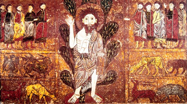 St. John the Baptist preaching in the desert and surrounded by wild animals, from the Altar Frontal of Gesera, 13th centurySchool of Aragon |