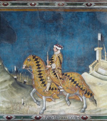 Guidoriccio da Fogliano. Guido Riccio da Fogliano, commander of the army of Siena, during the capture of the castle of Montemassi in Maremma in 1328. Fresco by Simone Martini(Guidoriccio da Fogliano. Guido Riccio da Fogliano (died 1352), commander (condottiero) of the army of Siena, during the capture of the castle of Montemassi in Maremma (Maremma) in 1328. Fresco by Simone Martini (1284-1344))Simone Martini |