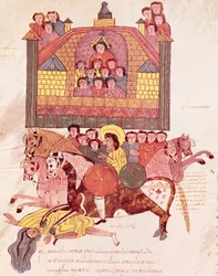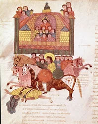 Death of Jezebel, from the Bible Mozarabe(Fol.150v Death of Jezebel, from the Bible Mozarabe )Spanish School |