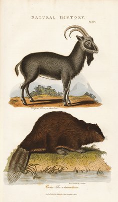 Alpine Ibex and European Beaver(Alpine Ibex and European Beaver or Common Beaver - Alpine ibex goat, Capra ibex, and common Eurasian beaver, Castor fiber. Handcoloured copperplate engraving after Sydenham Edwards from John Mason Good's Pantologia, a New Encyclopedia, G. Kearsley, London)Sydenham Teast Edwards |