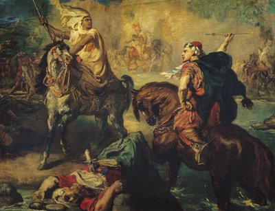 Arab Tribal Chiefs Challenging Each Other to Single Combat, Under the Ramparts of a City(Chefs de tribus arabes se defiant au combat singulier, sous les ramparts d'une ville (oil on canvas))Theodore Chasseriau |