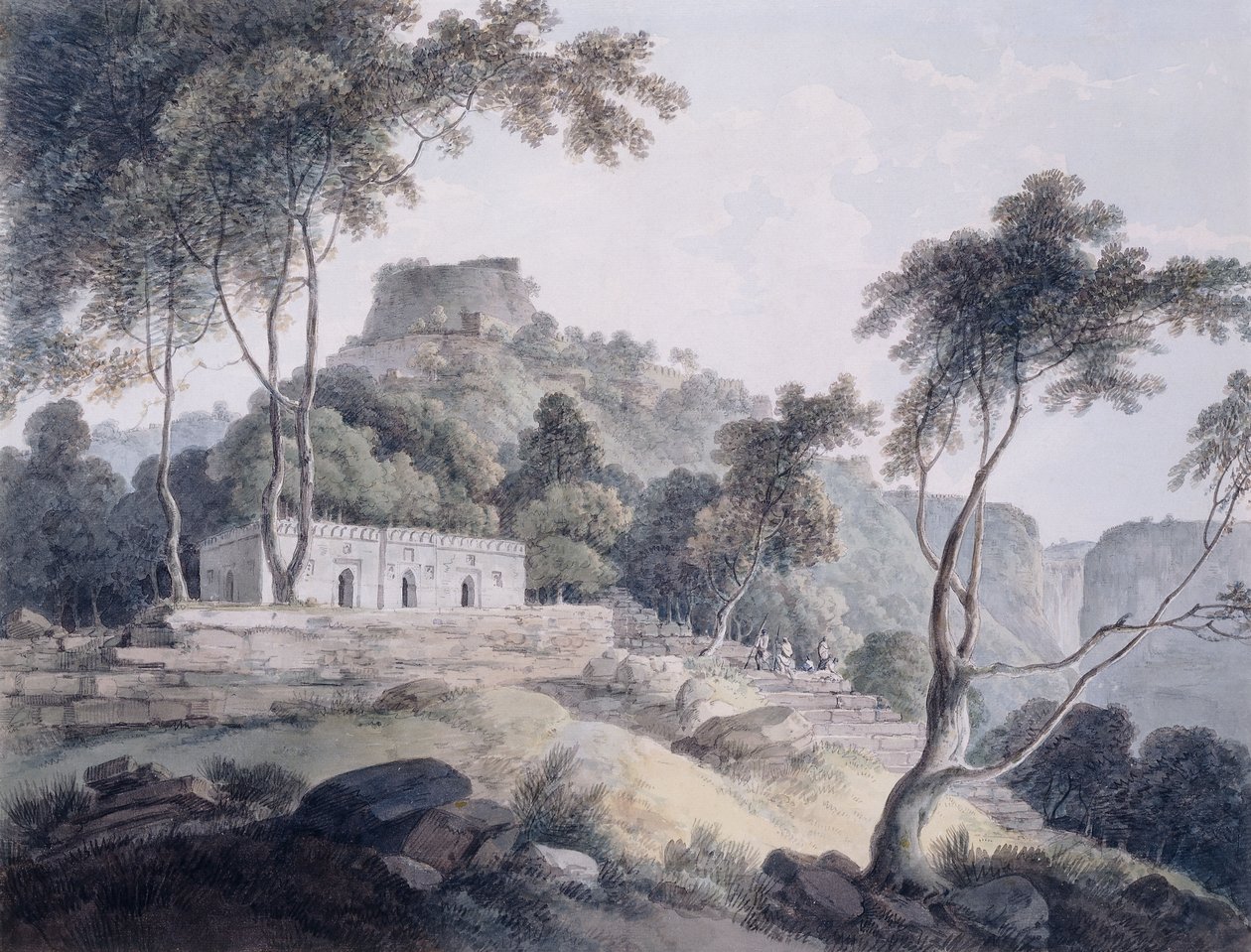 pilgrimage · artist british · castle · fortress · religious · outdoor · effort · northern india · country · time of day · mountainscape · english art · rural · building exterior · bystander · small group of people · steps · hilly · asia · landmark · natural space · late eighteenth century · fortification · outside · military · daytime · drawing · people · eighteenth century · commemorating · watercolour · remembrance · 18th century · mountainous · background people · pencil drawing · pencil · hilltop · european artist · exterior · tree · monument · human · rohtasgarh fort · plant part · memorial · water colour · view · citadel · watercolor · overlooking · foliage · countryside · late 18th century · scenery · scenic · outdoors · water color · fort of rohtas · plant · architecture · artist european · mountain · india · nature · scene · british artist · summit · islamic · architectural · artwork · group · glorifying · 18th century painting · english artist · peak · military base · small group · hill · endeavour · hillside · building · painting · religion · daniell · thomas daniell · islam · william daniell · bihar · fort · rohtasgarh · rajghat · Private Collection / Bridgeman Images |