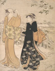 weather · season · female · women · woman · people · country · snow · pattern · clothes · museum · color · japan · japanese · dress · kimono · kimonos · location · century · clothing · floral · teapot · printing · full length · full-length · flowered · wintry · colour · patterned · the met · metropolitan museum of art · the metropolitan museum of art · 18th century · eighteenth century · artistic school · edo period · ukiyo-e · woodblock print · winter · torii kiyonaga · kiyonaga · torii · heritage art · ink and colour on paper · polychrome woodblock print · Heritage Art/Heritage Images