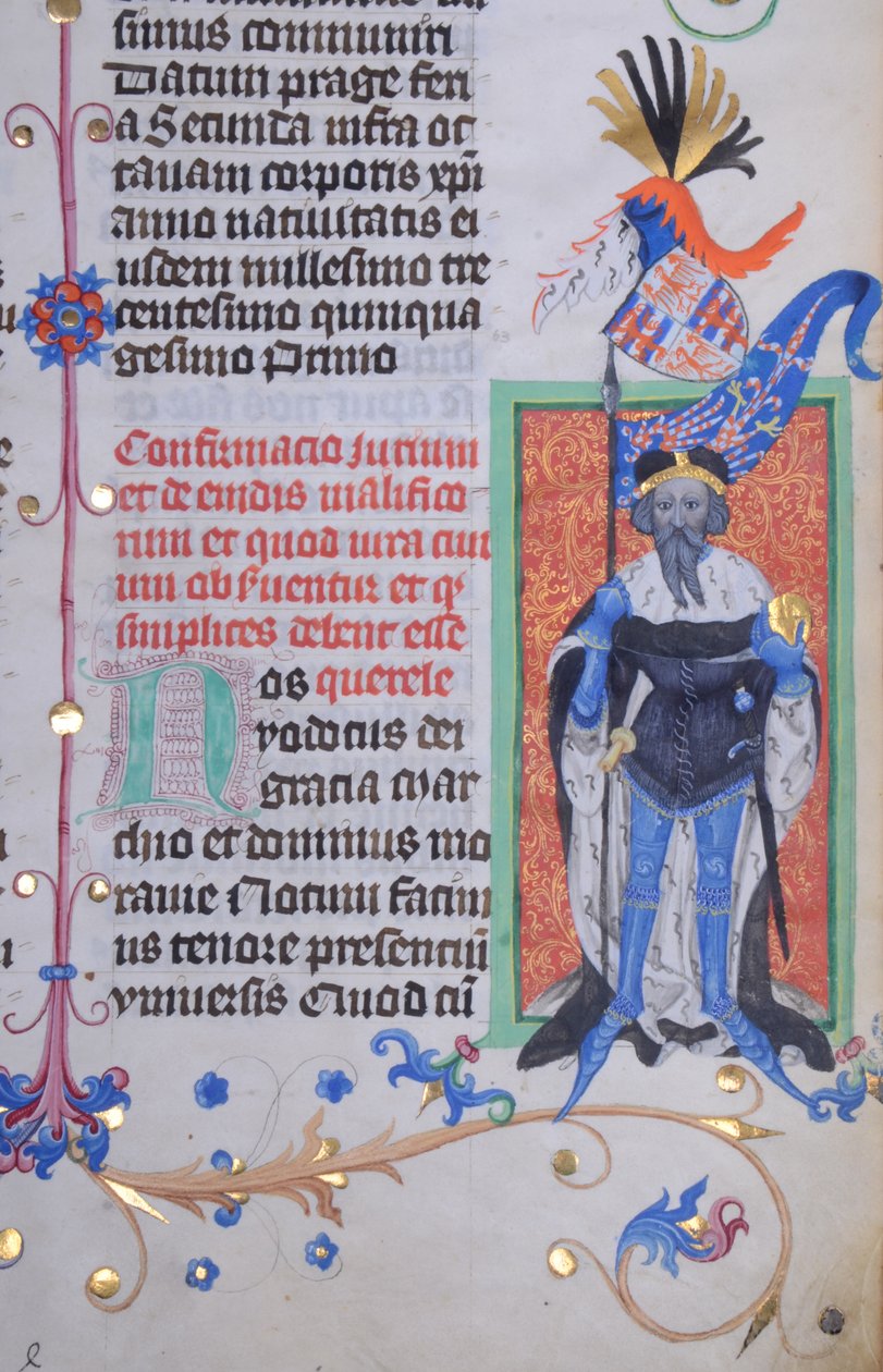 Charlemagne - illumination, codex Add. 60629, f.3 May, from 12 Calendar pages in gold and colours, with architectural frames each containing a sign of the Zodiac, an apostle and a labour of the month Female Saint in a Historiated Initial "L" from a Choir Book Historiated Initial R Depicting Emperor Charlemagne Solomon from the Souvigny Bible Historiated Initial O Depicting a Figure of Wisdom, from the St. Benigne Bible Initial A: King David Portrait of King in a Letterbox Prophet Isaiah Initial Q: David Before Saul Psalter Initial D: David in Prayer Psalm 109, Initial D, The Holy Trinity, Illustration from the Printed Book of Hours (Use of Rome): fol. 109v, St. Catherine Elizabeth Woodville, Queen Consort of King Edward IV of England Printed Book of Hours (Use of Rome): fol. 109v, St. Catherine Printed Book of Hours (Use of Rome): St. Paul Illustration from Initial A: King David Enthroned Printed Book of Hours Use of Rome: St. Catherine Charlemagne (From Livro do Ameiro-Mor) The letter A with a depiction of St. Benedict: f.70r of an Antiphonary Printed Book of Hours Use of Rome: St. Paul Psalter with Sarum Use Calendar, c.1425-75 Peter IV of Aragon Called the Ceremonial or el del punyalet Ms. New Coll 242, f.178r, Commentary on Aristotle’s Politics by Walter Burley Page from the Golden Legend, Bruges, c.1400-10 Printed Book of Hours Use of Rome: fol. 100r, St. James the Greater, 1510 Pope Innocent IV