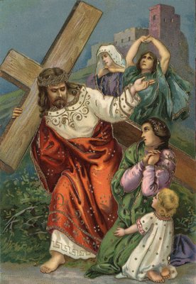 Way of the Cross - via crucis - Stations of the Cross: eighth station, Jesus meets the women of Jerusalem Chromolithography Private collectionUnbekannt |
