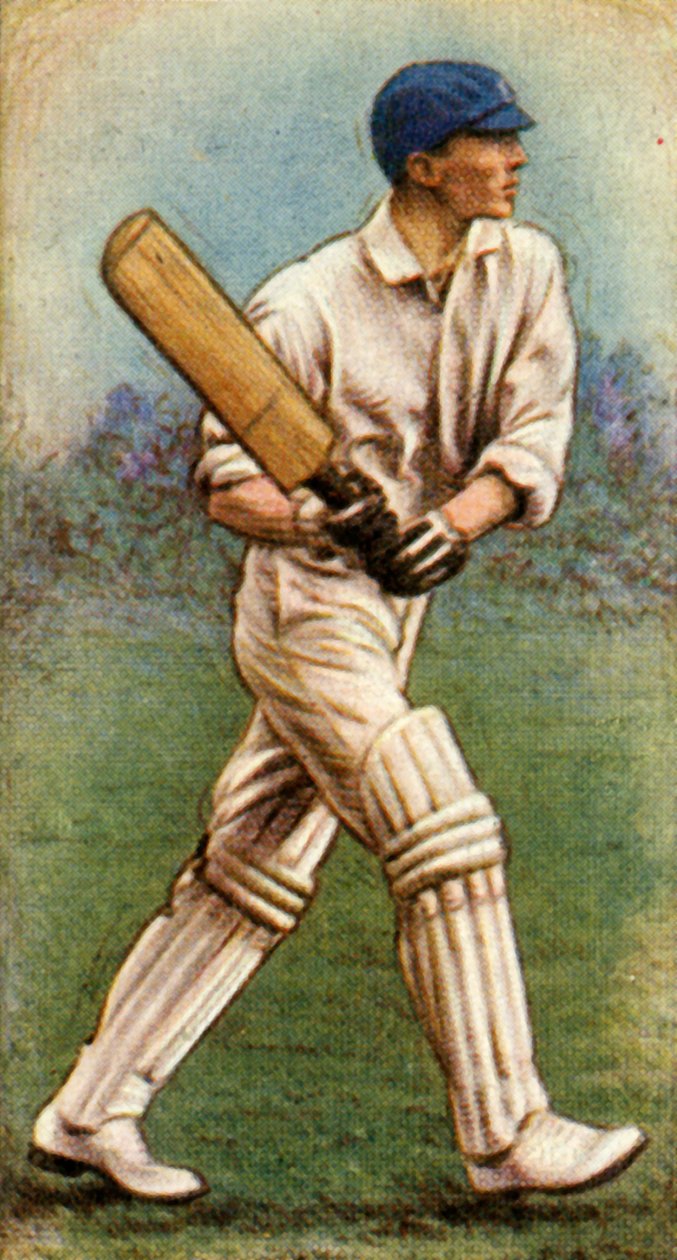 side view · england · gloves · glove · people · male · sport · sports · country · playing · clothes · british · english · headdress · color · action · profile · cricket · nottinghamshire · dress · location · century · britain · sportsmen · sportsman · batting · cricketer · concept · batsman · twenties · one person · headgear · colour · nottingham · 1920s · 20th century · cigarette card · george · cricket whites · unknown · cigarette card · wd ho wills · wills · gunn · wills cigarettes · wd and ho wills · wd ho · george gunn · g gunn · The Print Collector/Heritage Images