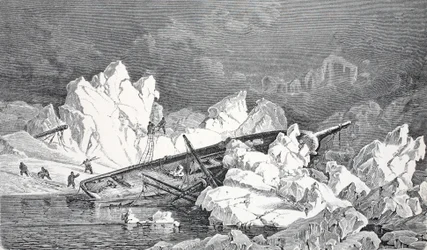 germany · ship · north pole · graphic arts · black-and-white · woodcut · anonymous · monochrome picture · blackwhite · genre · history · exploration ship · scientific expedition · arctic expedition · Fine Art Images/Heritage Images