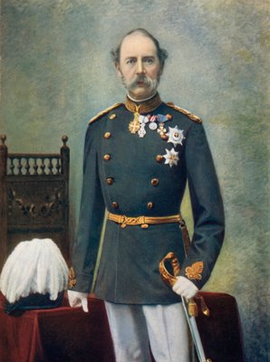 people · male · face · country · body · denmark · danish · monarch · clothes · weapon · weapons · color · colour · king · royal · uniform · dress · military · location · victorian · century · sword · moustache · royalty · swords · concept · medal · medals · warfare · 19th century · weaponry · nineteenth century · sovereign · the body · christian ix · king of denmark · portrait · unknown · king christian ix of denmark · The Print Collector/Heritage Images