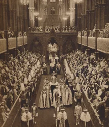 london · england · albert frederick of wales · gordon beckles · beckles · female · women · woman · people · male · event · walking · religious · architecture · arts · politics · balcony · religion · book · british · tradition · ceremonial · perspective · westminster · prime minister · century · architectural · congregation · procession · britain · newspaper · symmetry · thirties · literature · abbey · lady · concept · westminster abbey · monochrome · politician · rambling · architectural feature · black white · black and white · 1930s · 20th century · statesman · city of westminster · coronation · daily express · royal event · king of great britain · photograph · portrait · unknown · saxe-coburg-gotha · albert frederick arthur george · duke of york · gordon · king george vi · george vi · albert frederick arthur george saxe-coburg-gotha · processional · hm king george vi · coronation souvenir book · souvenir book · prince albert frederick of wales · The Print Collector/Heritage Images