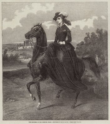 animal · female · women · woman · people · animals · horses · horse · equestrian · riding · rider · country · french · france · clothes · royal · dress · location · century · royalty · horseback · lady · monochrome · 19th century · black white · black and white · empress · nineteenth century · side-saddle · engraving · portrait · unknown · jacques-louis david · david · jacques-louis · The Print Collector/Heritage Images