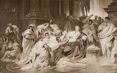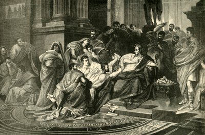 italy · people · cassell · cassells illustrated universal history · karl theodor von piloty · piloty · karl theodor von · carl theodor von piloty · carl von piloty · karl von piloty · male · interior · arts · country · rome · emperor · book · crime · royal · death · senate · ancient · roman · location · century · inside · murder · literature · royalty · concept · killing · slaughter · stabbing · monochrome · assassination · caesar · plot · conspiracy · conspirator · 19th century · indoors · black white · black and white · ancient rome · nineteenth century · history · historic · 1st century bc · murdering · slaughtering · julius caesar · illustration · engraving · dictatorship · unknown · cassells · julius · caesar · gaius julius caesar · edmund · cassell co · edmund ollier · ollier · brutus · cassell and company ltd · marcus junius brutus · marcus junius · cassell company · conspirators · The Print Collector/Heritage Images