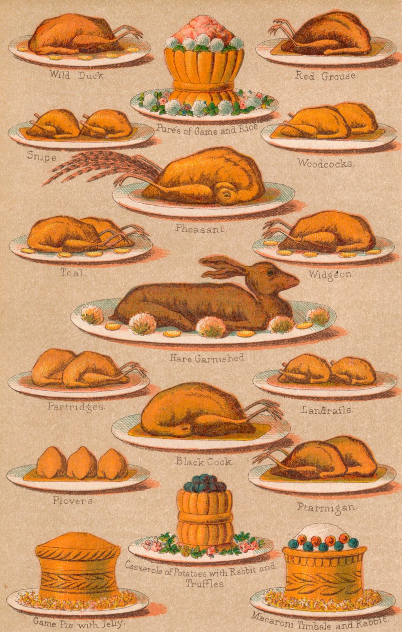 food · arts · game · book · cooking · cookery · color · colour · plate · meat · text · illustration · century · choice · prepared · variety · literature · ready · concept · titled · household management · 1900s · 20th century · object · unknown · mrs beeton · ward lock co · ward lock · everyday cookery · isabella mary beeton · mrs beaton · The Print Collector/Heritage Images