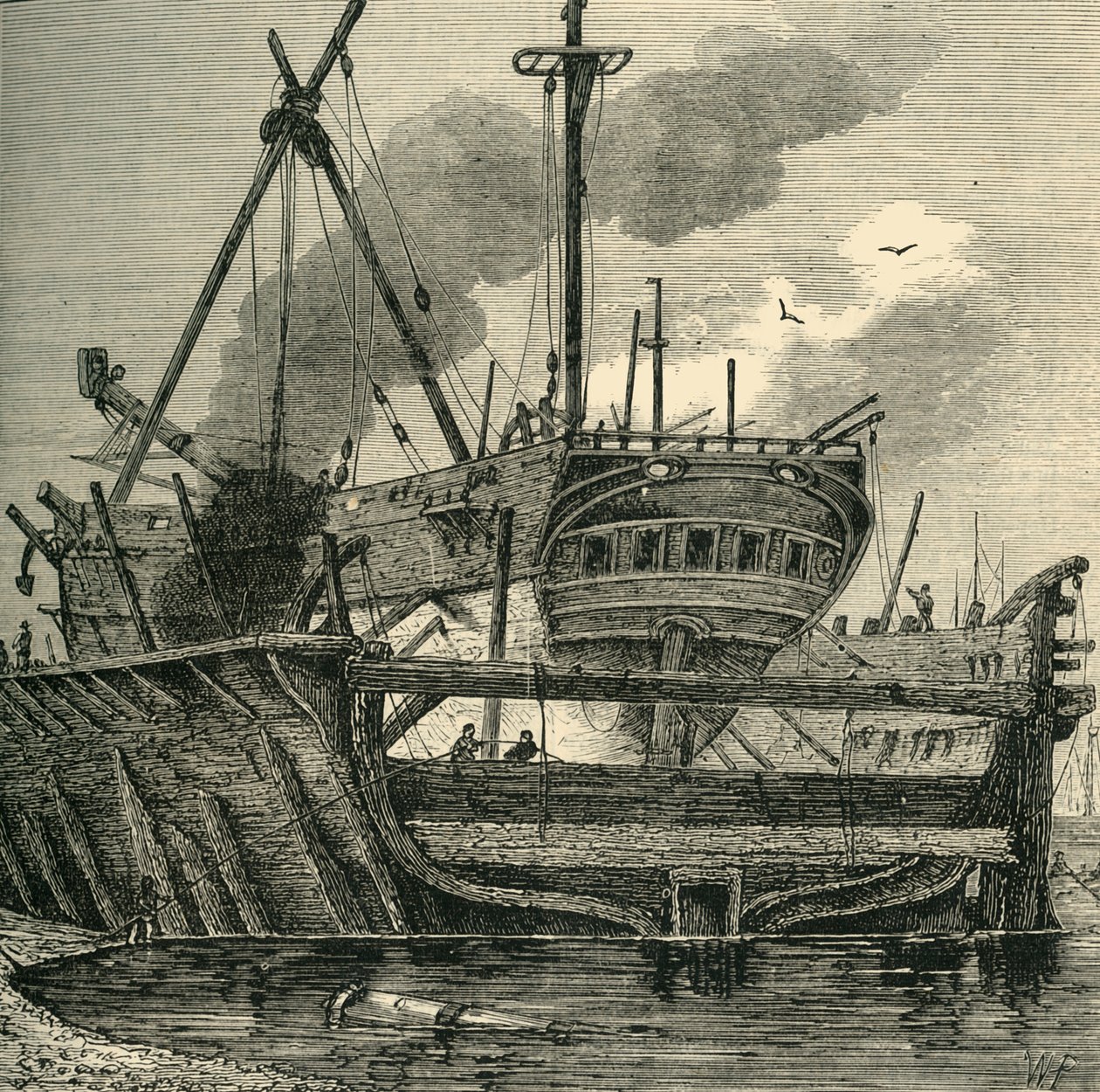transport · transportation · exterior · outdoors · city · river · london · england · river thames · thames · country · ship · ships · occupation · british · geography · english · floating · wharf · docks · dock · location · century · britain · profession · concept · outside · galleon · galleons · shipyard · navy · monochrome · warfare · publication · naval warfare · 19th century · water transport · warship · black white · black and white · publisher · nineteenth century · royal navy · deptford · deptford dockyard · geographical feature · lewisham · landscape · william henry prior · old and new london · cassell · unknown · edward · walford · edward walford · cassell company ltd · naval ship · prior · william henry · petter · galpin co · galpin company · royal navy dockyard · The Print Collector/Heritage Images |