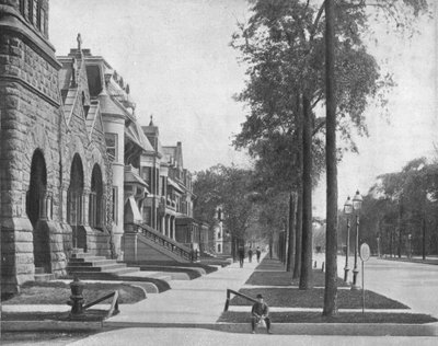 city · road · building · buildings · houses · street · plants · country · grass · lane · avenue · boulevard · chicago · illinois · location · century · monochrome · verge · united states of america · united states · black white · black and white · 1900s · 20th century · american · trees · america · george · photograph · landscape · unknown · cromwell · george cromwell · professor george cromwell · professor george r cromwell · george r cromwell · george r · ashland avenue · The Print Collector/Heritage Images