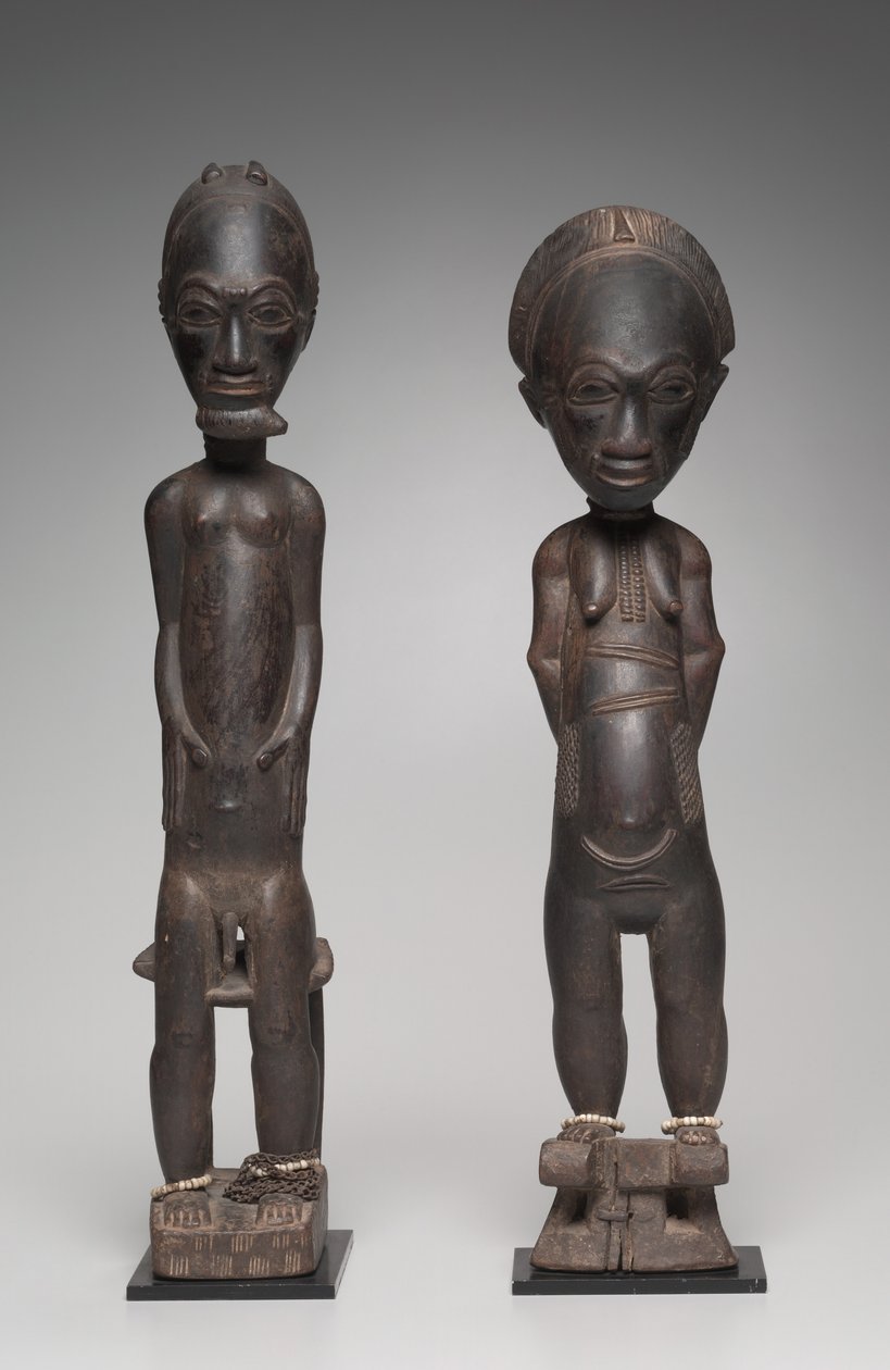 carved · guinea coast · female · spirit · african · early c20th · sculpture · wood · late c19th · ivory coast · spirits · male · guinean · wood-carving · statuette · baule · statue · Cleveland Museum of Art, OH, USA / Bridgeman Images |