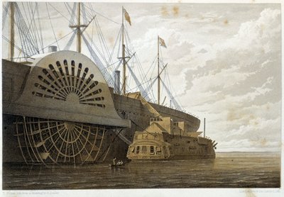 The old frigate with her freight of cable alongside the 'Great Eastern' at Sheerness - in 'The Atlantic Telegraph' by W. H. Russel, ca. 1860(The old frigate with her freight of cable alongside the “” GreatEastern”” at Sheerness - in “” The Atlantic telegraph”” by W. H. Russel, ca. 1860)Unknown artist |