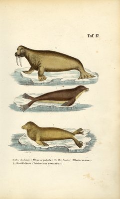 Zoology chart depicting a seal, a walrus and a sea lion. 19th centuryUnknown artist |