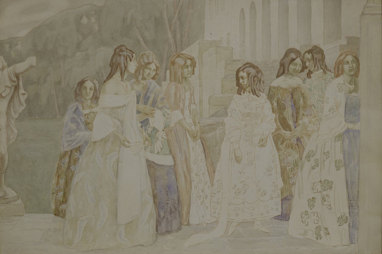 park · garden · painting · symbol · melancholy · loneliness · walk · russia · impression · ladies · symbolism · poetry · trees · requiem · young women · genre · mythology · allegory and literature · brush · watercolour · ink and white colour on paper · manor estate · crinolines · borisov-musatov · viktor elpidiforovich 1870-1905 · Fine Art Images/Heritage Images