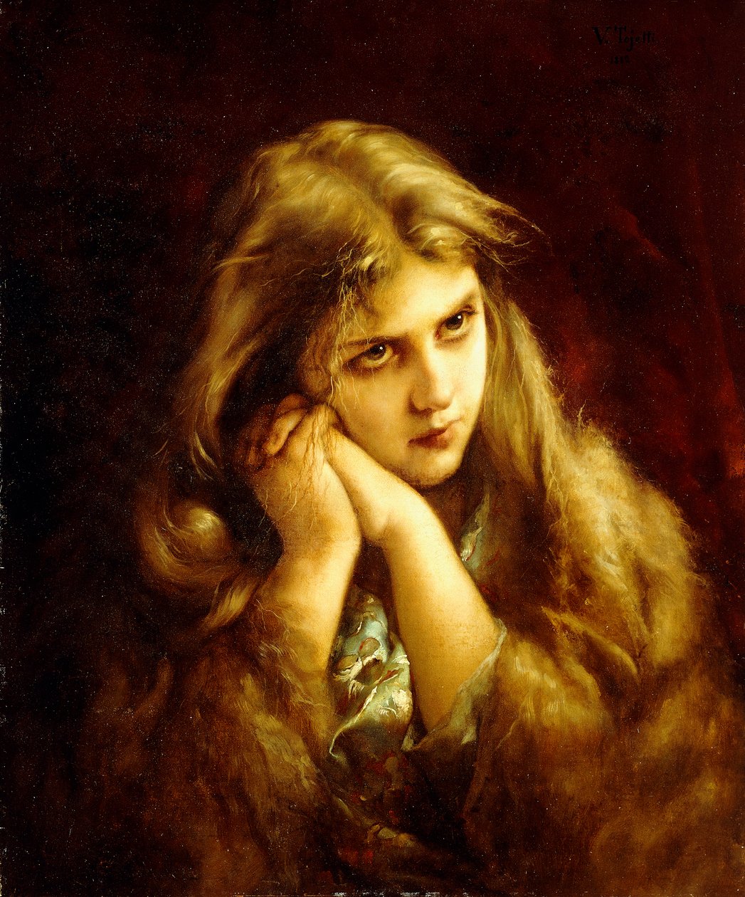 night · teenage girl · brown eyes · nineteenth century · contemplating · time of day · think · 1880s · oil on canvas · female · oil painting · girl · looking away · young · fine art · darkness · aversion · solemn · 19th century painting · front view · serious · apparel · contemplate · teen · thinking · fair haired · garment · people · nocturnal · clothes · coat · caucasian · 19th century european art · caucasian ethnicity · temperament · youthful · behaviour · european artist · dark eyes · human · posture · pensive · late nineteenth century · contemplation · thought · fur coat · half-length · 19th century · hair · italian art · fair · half length · facial feature · rest · person · turning away · italian artist · taking a rest · youth · artist european · ethnic origin · hands clasped · late 19th century · clothing · teenager · looking · dress · repose · outer garment · attire · blonde · artwork · eye colour · blonde hair · girls · resting · one person · painting · virgilio tojetti · moment · tojetti · blond · 1882 · Private Collection / Bridgeman Images |