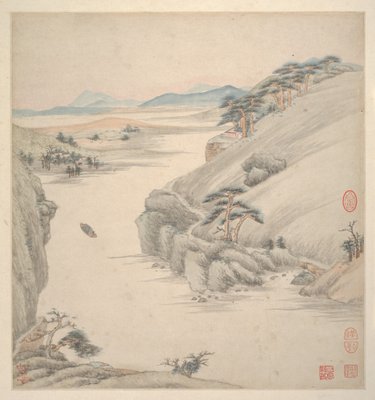 river · landscape · mountain · mountains · country · china · chinese · museum · geography · location · century · 17th century · colour · the met · metropolitan museum of art · the metropolitan museum of art · seventeenth century · geographical feature · landscape · heritage art · ink and colour on paper · ink and colour on paper · wang jian · yuanzhao · lianzhou · wang chien · jian · wang · hsiang-pi · album of eighteen leaves · album of eighteen leaves · Heritage Art/Heritage Images