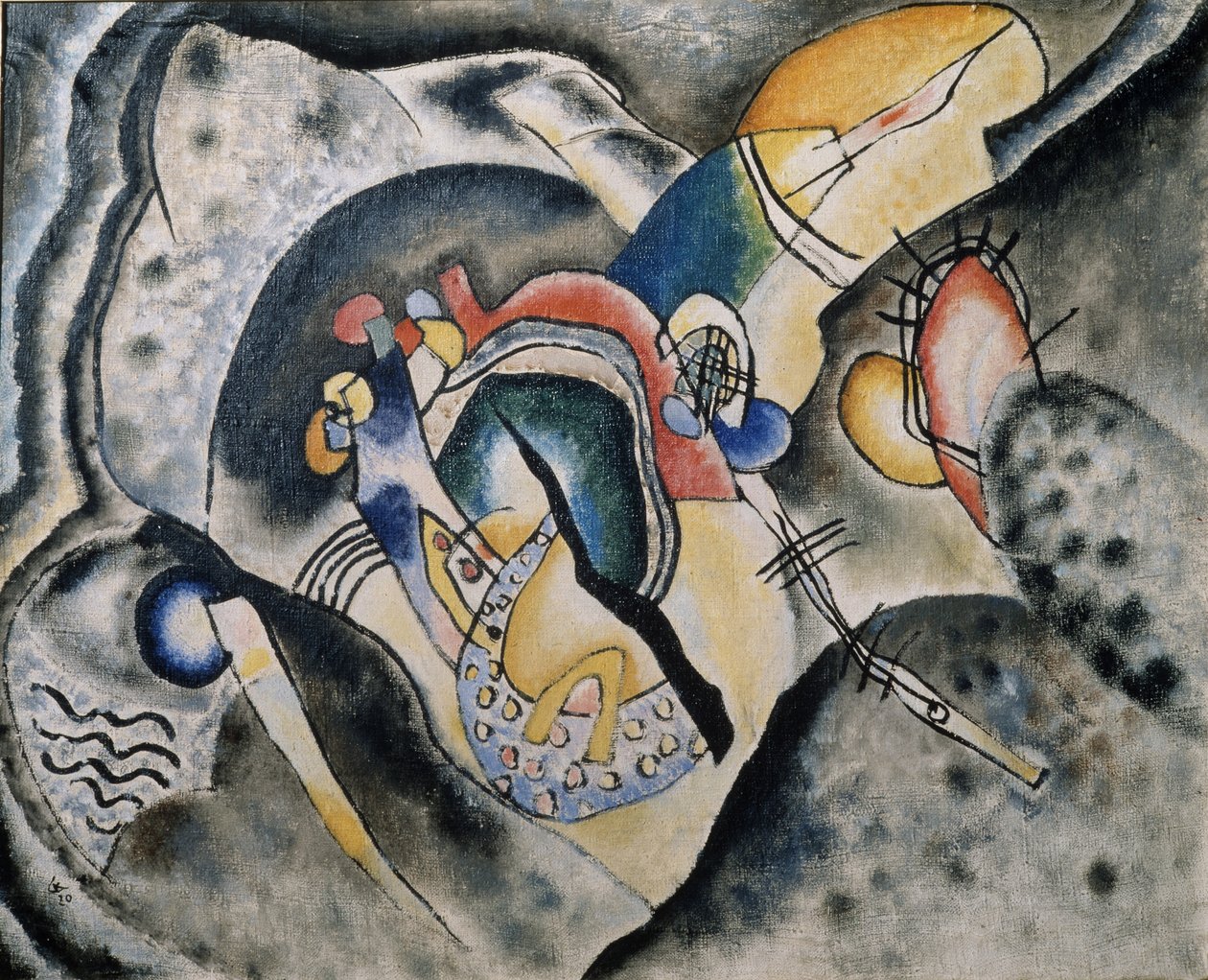 painting · modern · abstract · decorative · russia · rhythm · composition · abstract art · abstract expressionism · oil on canvas · russian avant-garde · nonrepresentational · colourfulness · kandinsky · wassily vasilyevich 1866-1944 · black stroke · state georgian art museum · tiflis tbilisi · Fine Art Images/Heritage Images