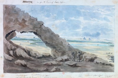 nature · standing · people · male · landmark · rocks · rock · adventure · egypt · exploration · rock formation · geography · horizon · pyramid · pyramids · century · distant · explorer · concept · 19th century · nineteenth century · art media · geographical feature · pyramids of giza · pyramids of gizeh · tgn · watercolour · landscape · wilkinson · Art Media/Heritage Images