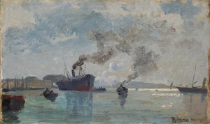 harbour · ship · sail · sailing · shipping · boat · steam · river · harbor · funnel · thames · port · Private Collection / Bridgeman Images |